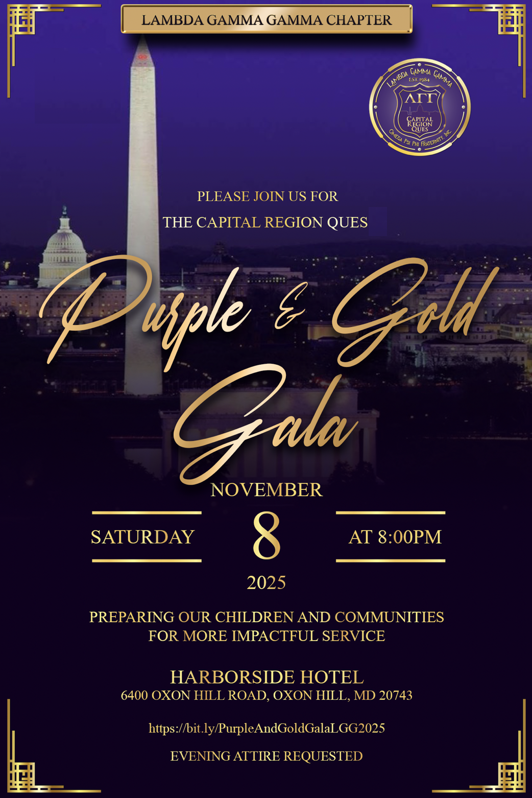 Welcome to the official website of the Lambda Gamma Gamma Chapter of The Omega Psi Phi Fraternity, Inc., proudly known as the “Capital Region Ques.” As we celebrate 40 years of impactful service, fellowship and brotherhood, we remain deeply committed to uplifting the communities we serve across Prince George’s, Anne Arundel, Montgomery, and Howard Counties, Washington, D.C. and Northern Virginia